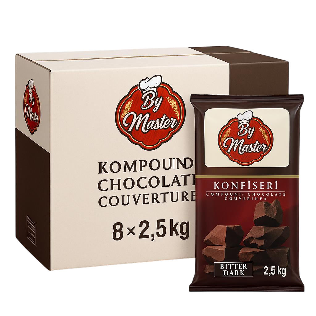 Bitter Kuvertür Konfiseri Çikolata, yüksek orandaki kaliteli kakao kitlesiyle hazırlanan, yoğun aroması ve güçlü lezzetiyle öne çıkan profesyonel bir çikolata türüdür. Şeker oranının düşük olması sayesinde kakaonun karakteristik sertliği ve damakta bıraktığı uzun süreli tat net bir şekilde hissedilir.